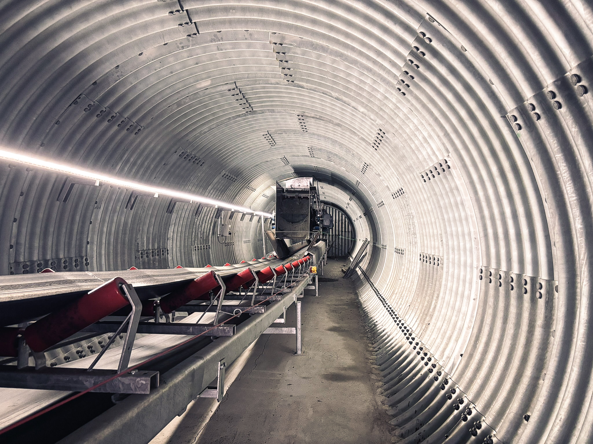 Engineered corrugated steel conveyor tunnels designed for heavy haul traffic, deep stockpile loading, and integrated emergency escape routes in mining and quarry operations.