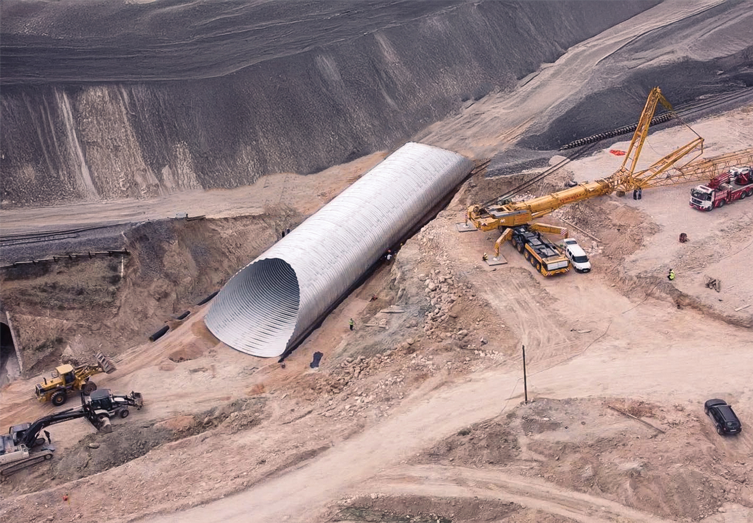Soluciones de puentes suelo-acero corrugado diseñadas para camiones mineros de gran tonelaje, terraplenes profundos y una separación segura de niveles dentro de operaciones mineras activas.