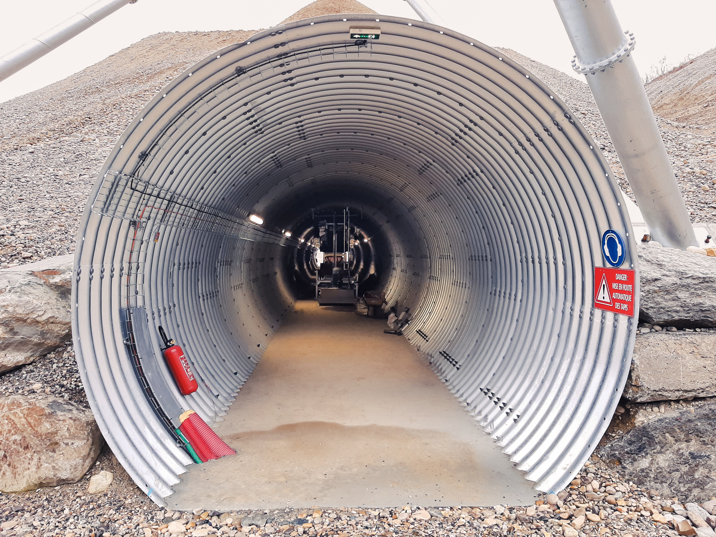 Tunnels pour convoyeurs en acier ondulé, conçus pour le trafic de transport lourd, le chargement sous stocks profonds et l’intégration de voies d’évacuation de secours dans les exploitations minières et carrières.